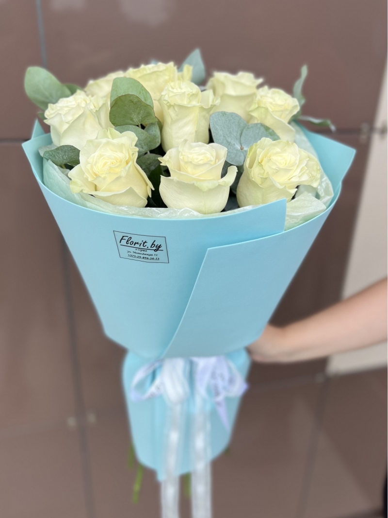 Состав: 9 роза, эвкалипт 3 , лента, упаковка