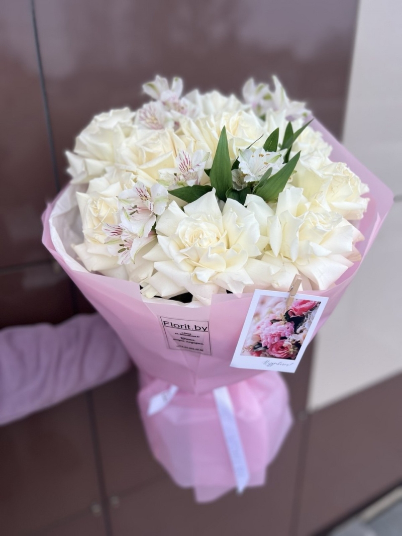 Состав: 9 французских розы ,альстромерии , упаковка, лента