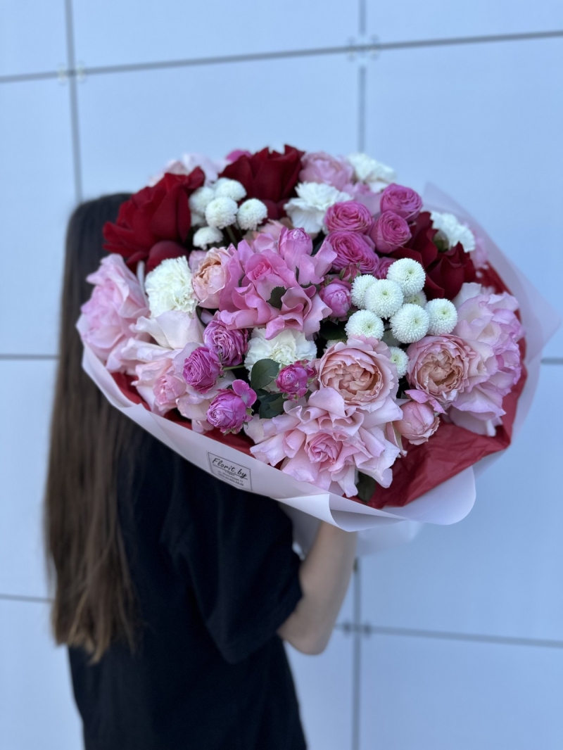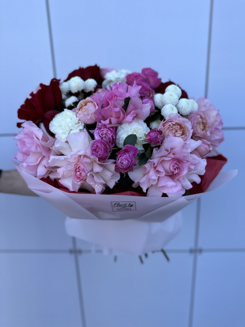 Состав: розы французские , кокосик , кустовые розы , зелень , лента