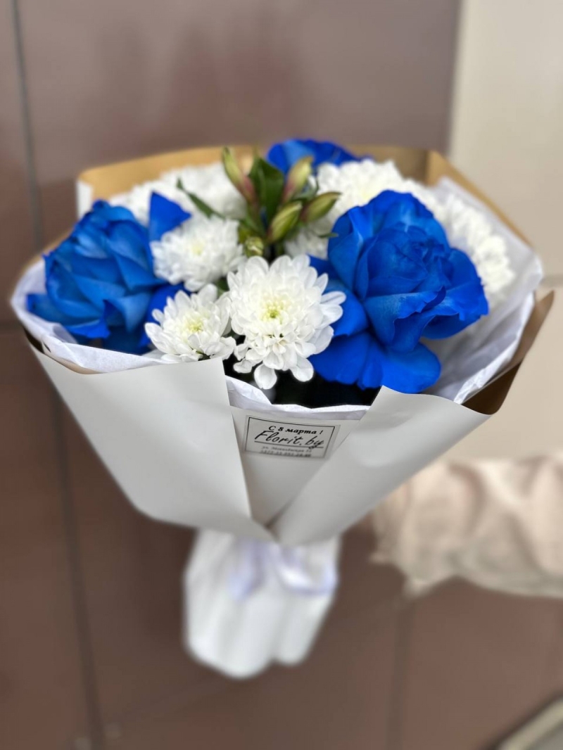 Состав: Хризантема, французские розы, фисташка, упаковка, лента