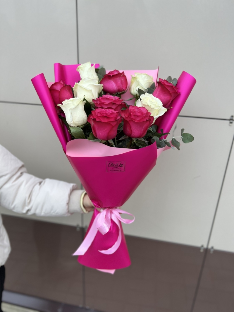 Состав: 11 роз 70 см, эвкалипт, упаковка , лента